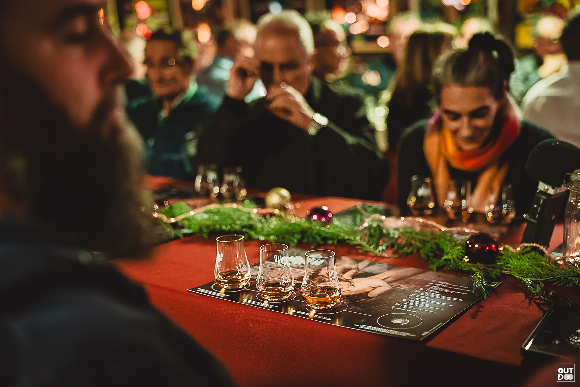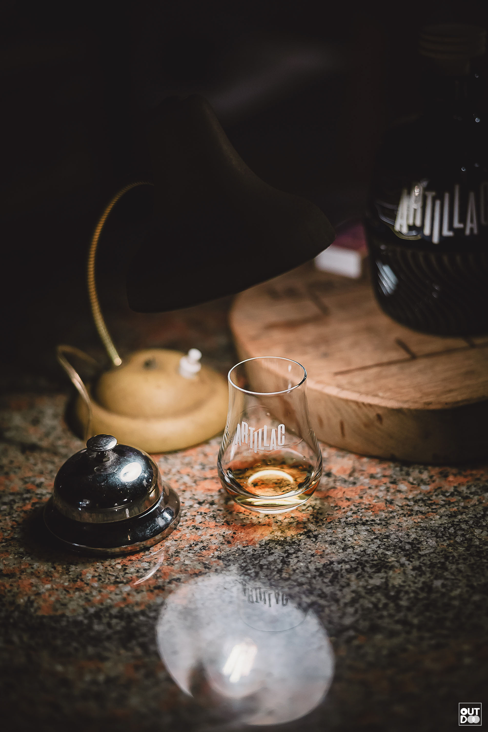 Mais c'est dans le bois que l'âme d'Artillac s'épanouit. L'eau-de-vie de malt repose dans des tais de chêne neuf, révélant vanille et épices douces; dans des fùts ayant contenu des vins rouges charentais, apportant profondeur, tanins soyeux et notes de fruits rouges; et dans des fûts de pineau des Charentes, où se dessinent des accents subtils de miel, de raisin et de fleurs. Ce vieillissement soigneusement orchestré offre à notre eau-de-vie de malt une complexité rare et une harmonie parfaite entre puissance et élégance.